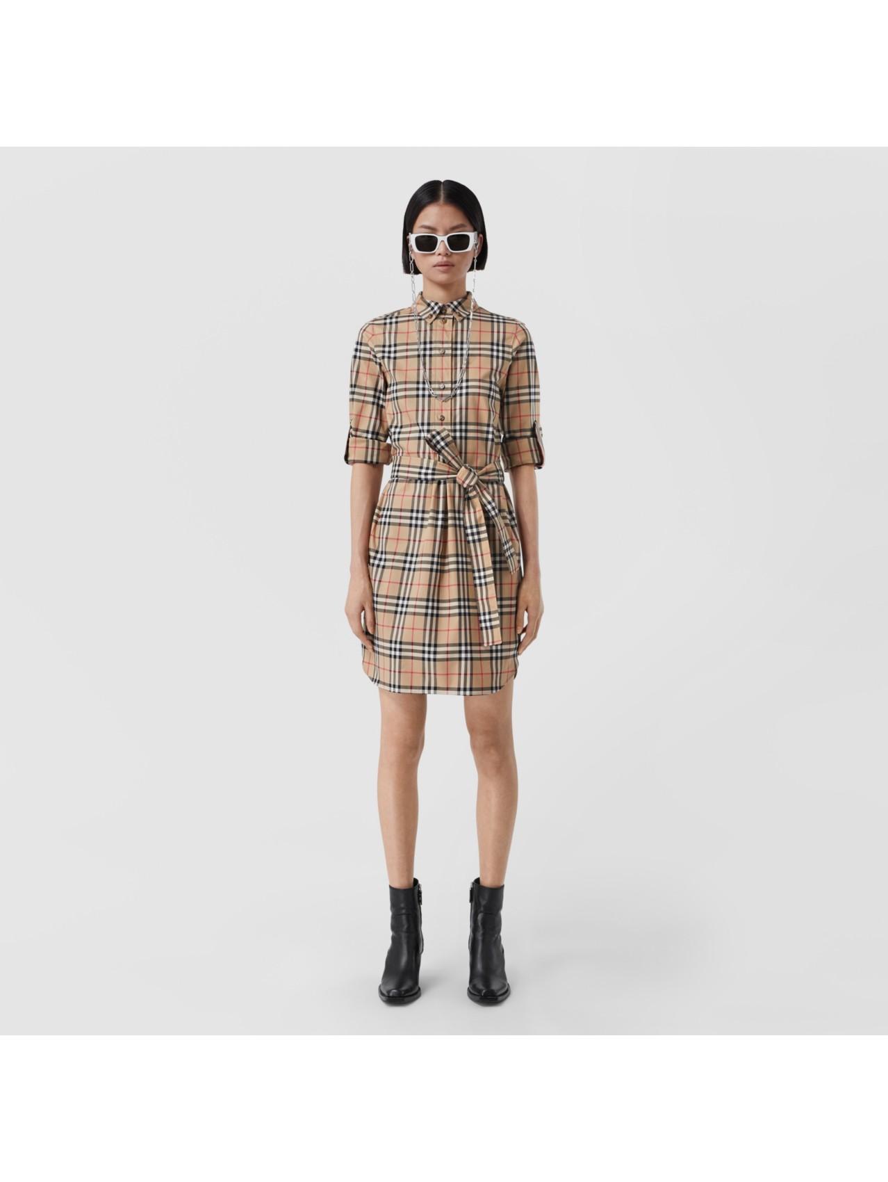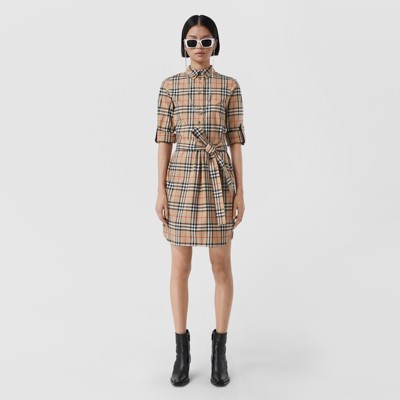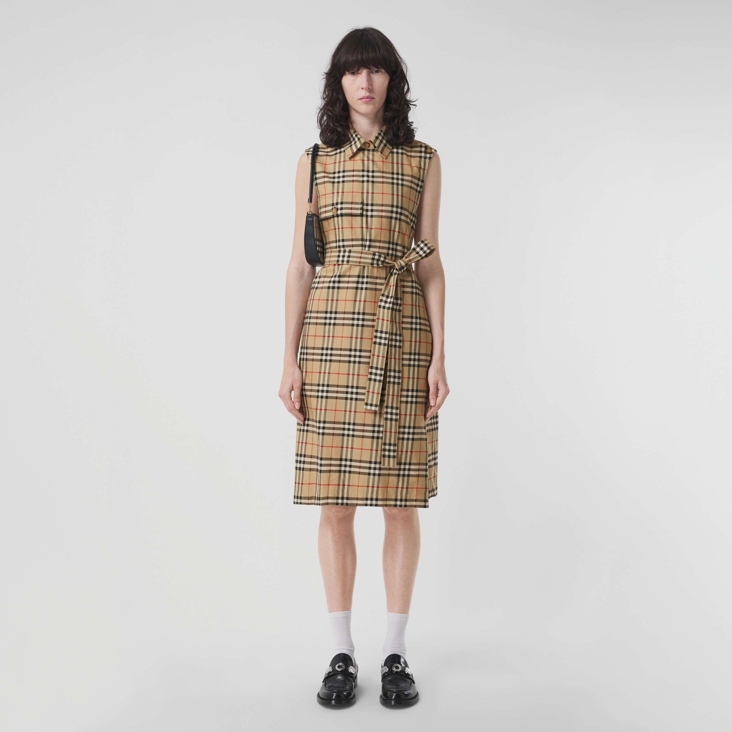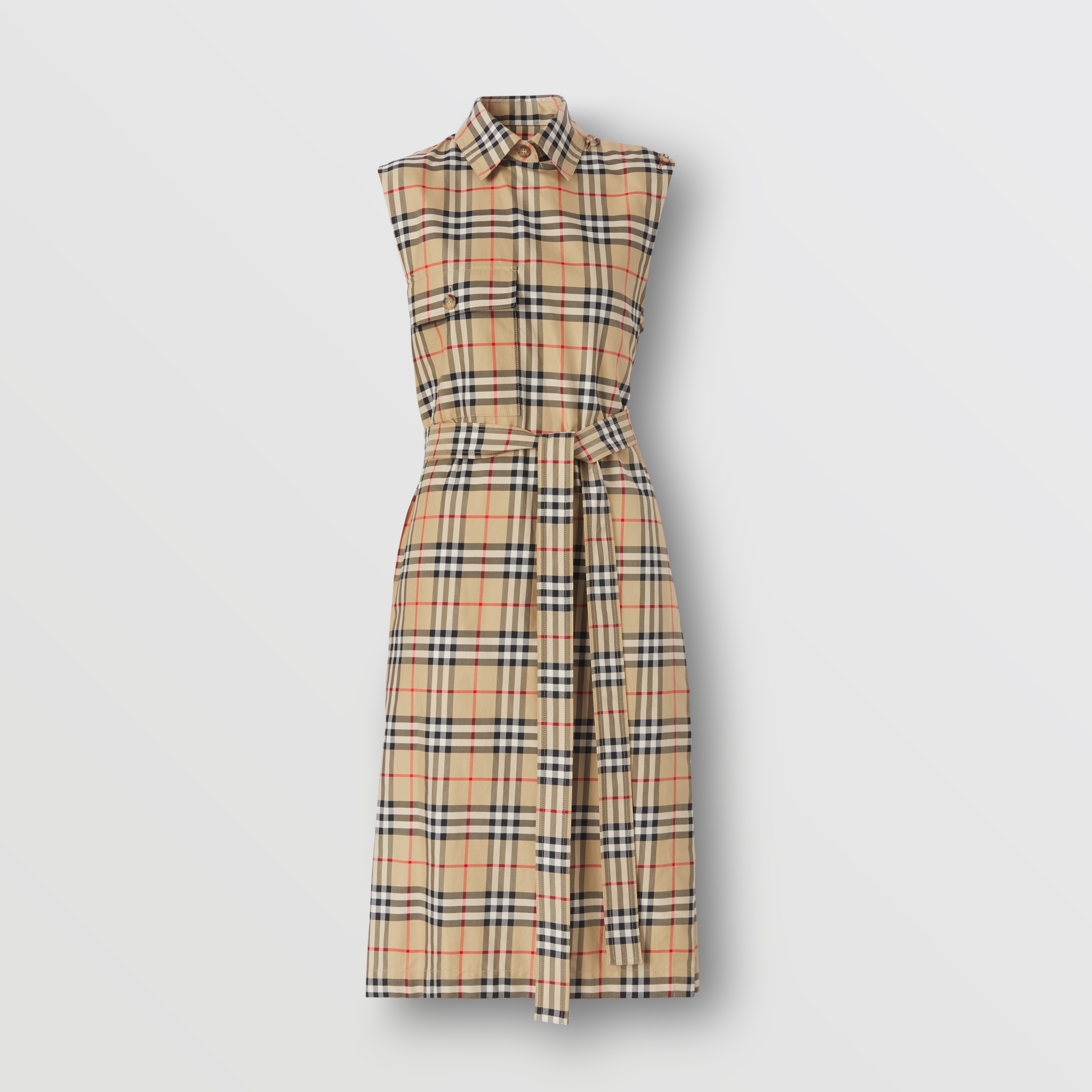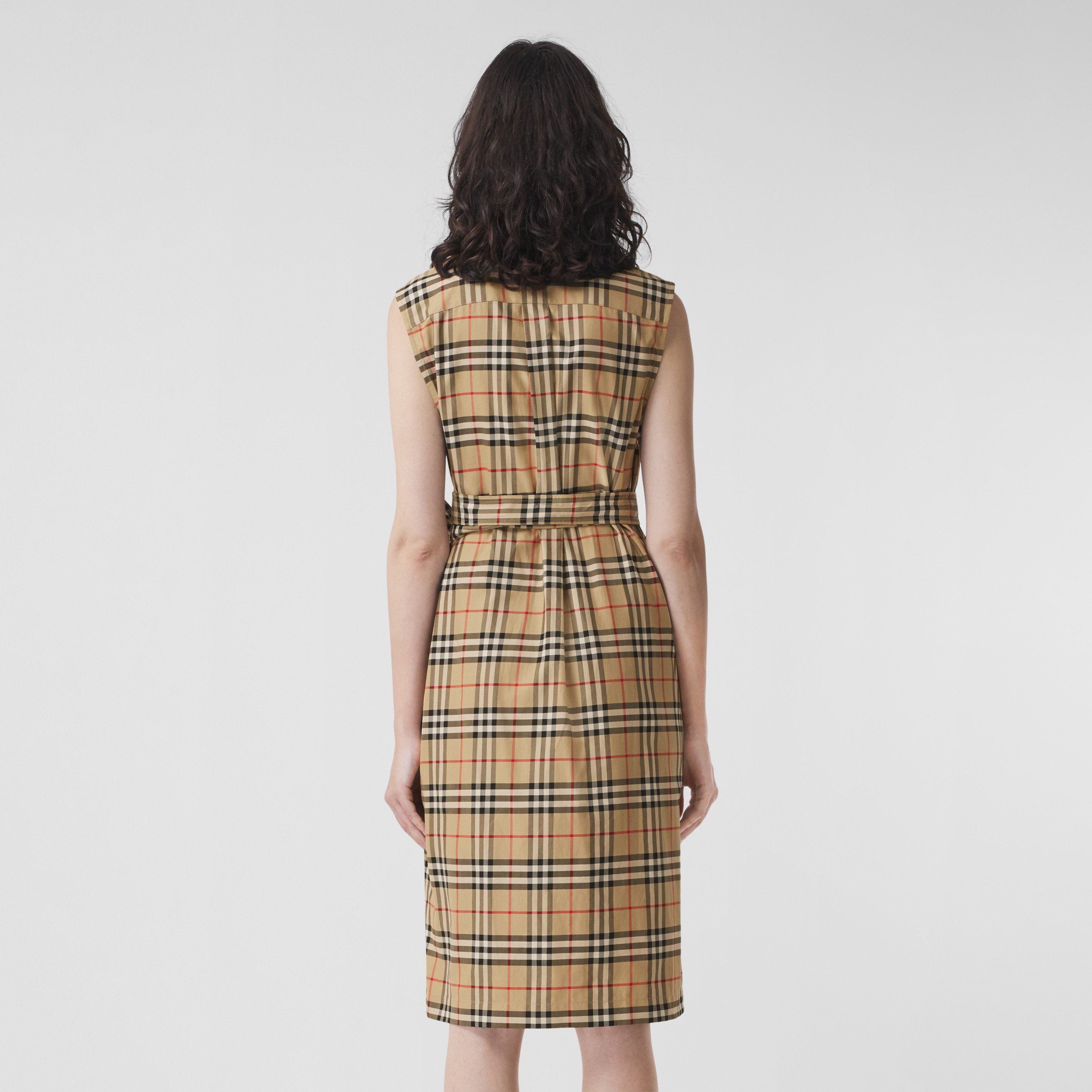Vintage Check Sleeveless Cotton Shirt Dress In Archive Beige Women Burberry Official
